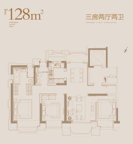 华发公馆推出房源是128套建筑面积约128平三房两厅两卫公寓