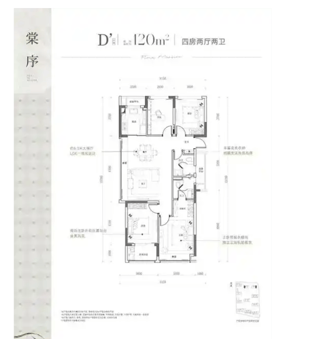户型:主力为108-139㎡四房,部分户型四开间朝南,采光优越2