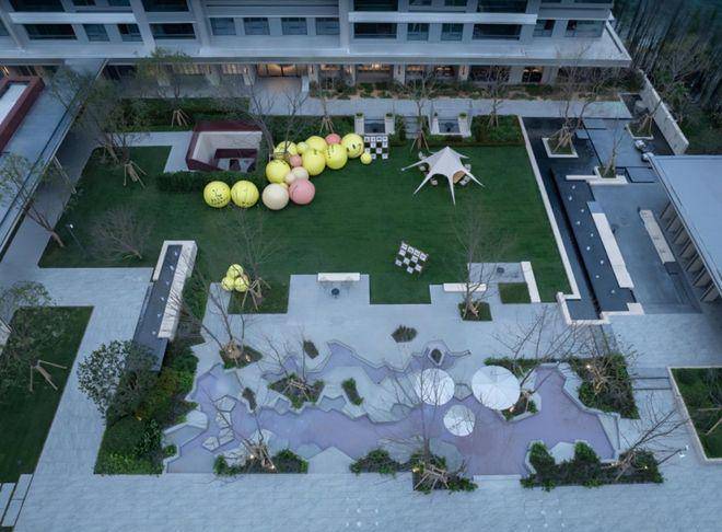 内部生活场景及配套也非常丰富:阳光草坪,搭个天幕就能露营;心爱的“毛孩子”也有了玩耍的去处;边上还有小朋友的戏水池,挽起裤腿就能踩水玩。