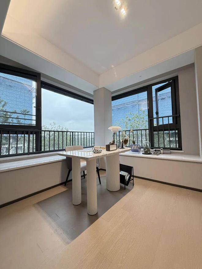 约270°南北双转角玻璃飘窗更是成为了一道靓丽风景线,超高的颜值,重塑大吴淞城市天际线。