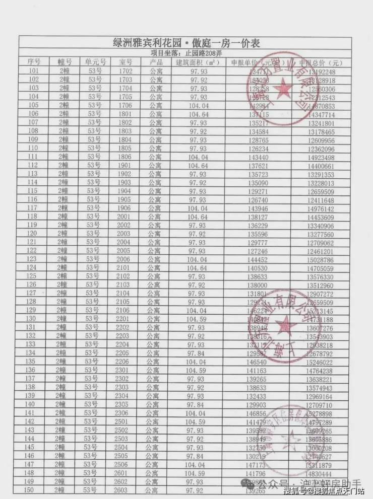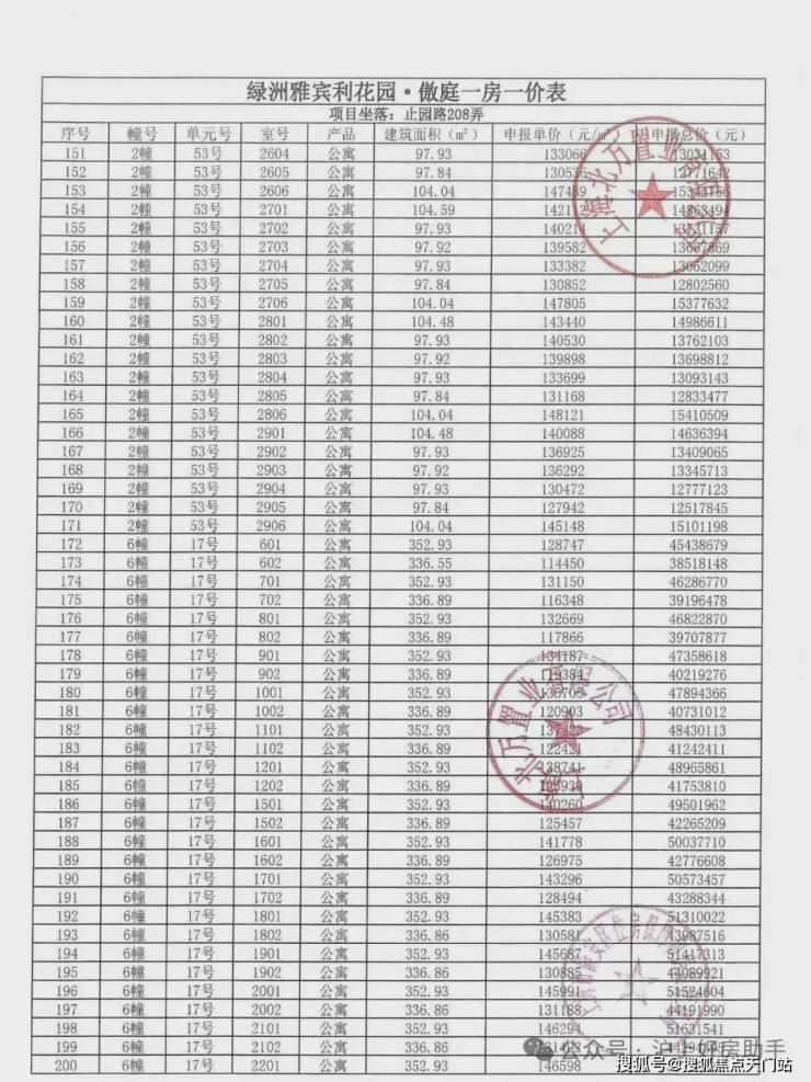 万科中兴傲舍一房一价表▼