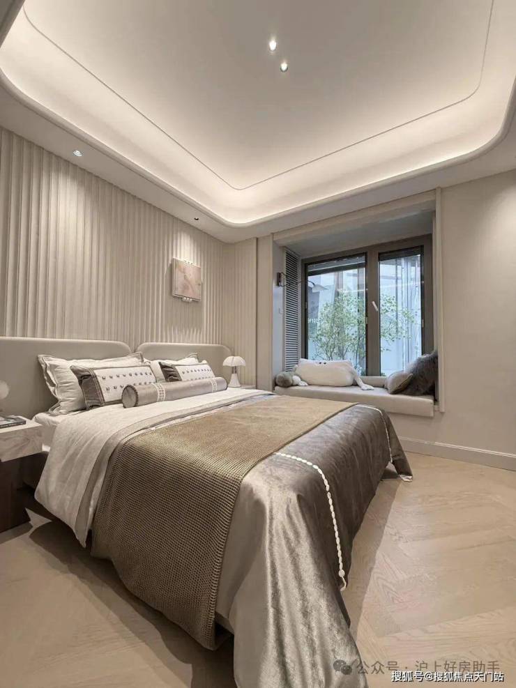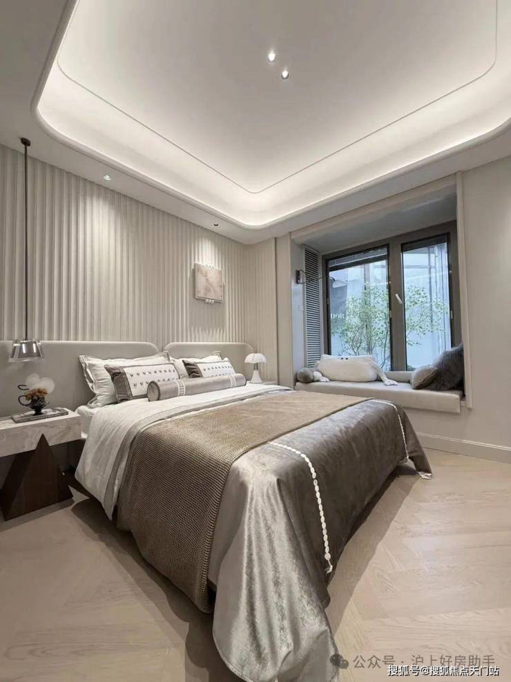 主卧“小家化”设计,配双衣帽间及双台盆豪华卫浴。同时主卧直面中兴公园,晨起拉开窗帘,绿意与晨曦一同入怀。