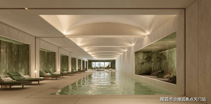 比如,植物园泳池选用了皮革面的绿色石材,营造一种树影斑驳的感觉。