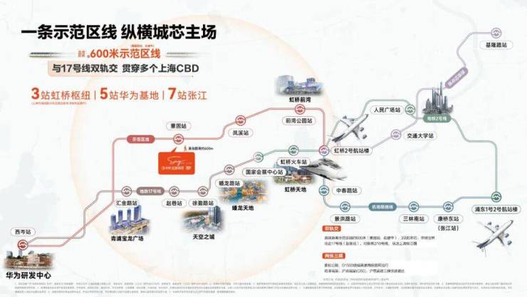 更关键的是,示范区线无缝衔接2号线、10号线、机场联络线,未来或接入地铁4号线,编织成一张真正的城市轨交网络。而保利虹桥和颂·西岸,就坐落在这张网络的关键节点上,直线距离约600米即可抵达示范区线重固站点,3站虹桥枢纽、5站华为基地、7站张江,串联起东西向科技高地,让重固与上海核心功能区建立了紧密联结,通勤出行的便捷不言而喻。