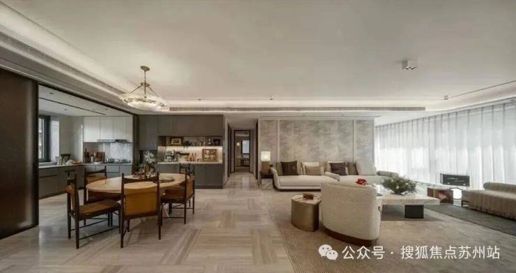 极简的线条、大幅的玻璃立面,合院以一种“隐贵”的姿态,将光、风、景请进室内。窗外是私家庭院,远眺是湖光天色。邻户间的竖向遮光构件、立面的格栅阳台,这些隐于无形的设计,是对私密的高级守护。而雅灰鎏金色的主调,则用当代色彩转译了苏州淡雅温润的城市气质,将建筑织锦为一幅可传承的艺术藏品。