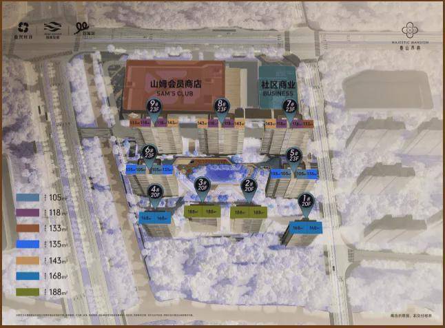 【户型面积】约105㎡、118㎡、134㎡、135㎡、144㎡、169㎡、188㎡