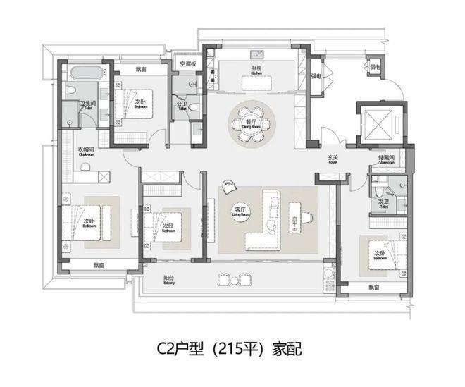 户型面积段:165-225㎡ 四房三卫