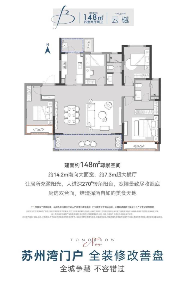 约7.3米大横厅(148㎡户型),构筑灵动自由的奢享空间,满足80%的家庭休闲时光;科学合理的动线规划,全装修交付,更是洞察现代人居之后的设计,为高净值人士提供细致入微的品质感生活体验,以达成各种宜居的可能性,征服苏州的挑剔眼光。