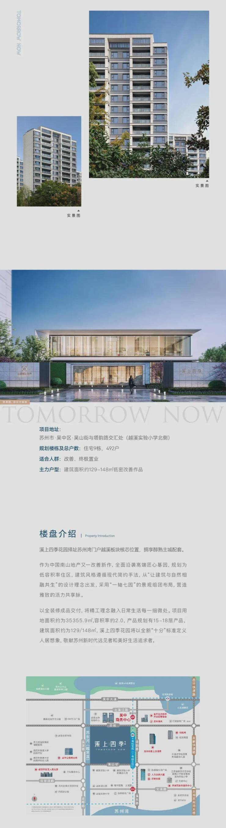 溪上四季花园是由国企南山集团独资开发项目,位于苏州湾门户越溪板块核芯位置,以高瞻国际居住的筑居理念和品牌国企的实力背书,于苏州湾发展宏图之上,打造全面改善社区,坐享越溪主城和苏州湾双核发展下的繁华动力。