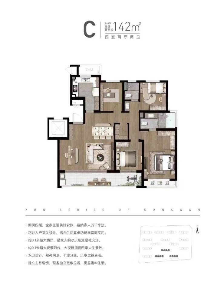 精工人文社区打造标准三:低密高品质精装社区(云栖时光,板块唯一低密社区,高精装标准,三大件:新风、地暖、中央空调全配)