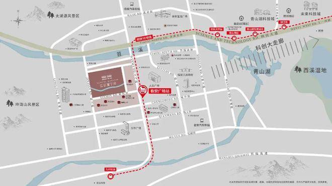 直线距离约300米即达苕溪,另青山湖风景区、玲珑山风景区、朗山公园等自然资源荟萃,静享都会绿境的自然风景。