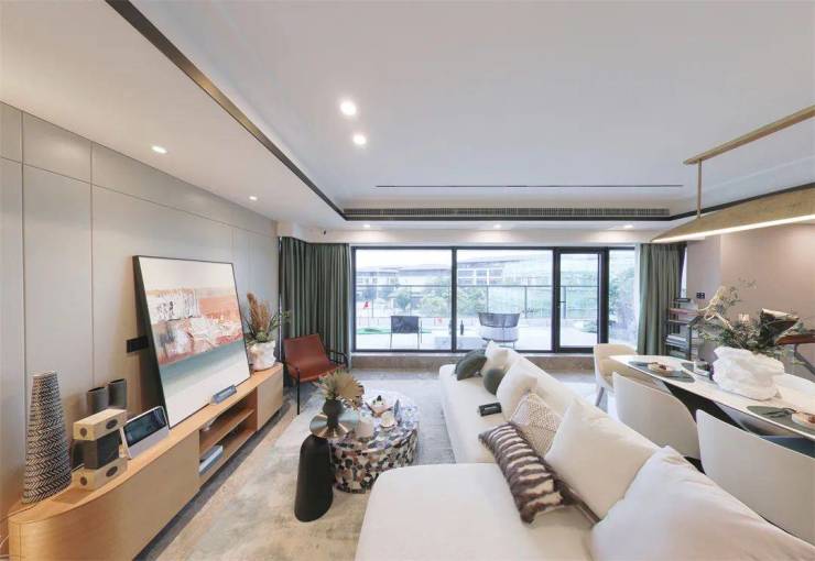 外立面以简约利落的线条,勾勒出动静相宜的现代感,质感稳重的石材、精致灵动的熏瓦,更增添了几分稳固质感。街巷静幽的立体庭院,配合大面积的落地窗,室内空间更通透;屋顶在中式传统建筑形制基础上做了美化,延续传统文化与坚固密实两不误。