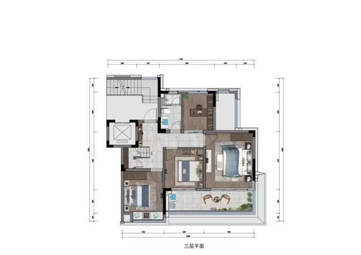 建筑面积138㎡的上叠:3室2厅2卫的户型功能,四楼为客厅,三楼为卧室,动静分离,最让人心动的是四楼客厅外约46㎡的大露台,不管是晾晒还是休闲都很适宜,或三五好友品茗聊天,上叠还有侧面一个10多平的可拓展面积,可做小菜园,也可以种种花草,随时享受户外阳光清风。