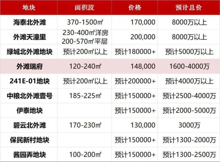 洛克外滩源、海泰北外滩、汤臣一品、外滩天潼里以及未来可以出让的少数几块土地,均是亿级以上的产品。