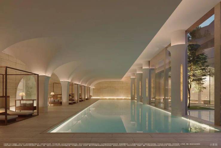 双会所系统,包括艺术沙龙空间、无边泳池与下沉庭院。