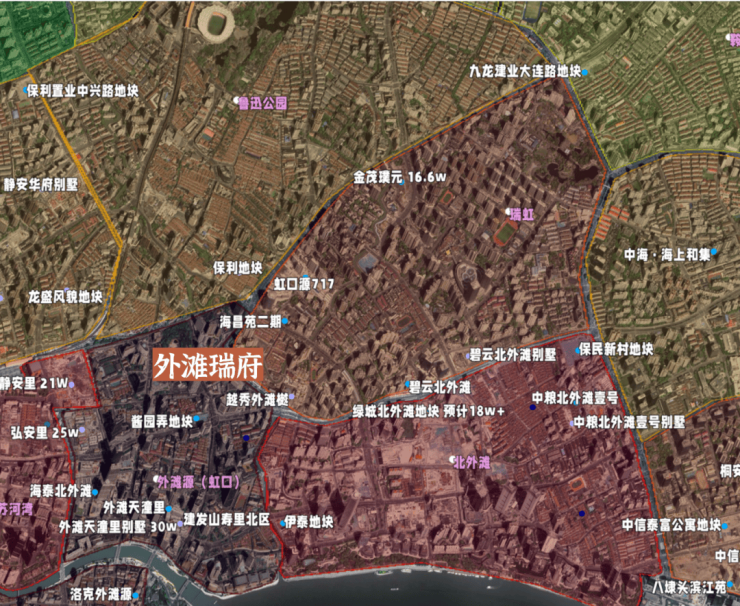 到今年,楼典又做了一次大北外滩区域(包含外滩源虹口、北外滩、瑞虹以及鲁迅公园)所有在售、待售、待出让的住宅土地盘点,发现了几个惊人的数据: