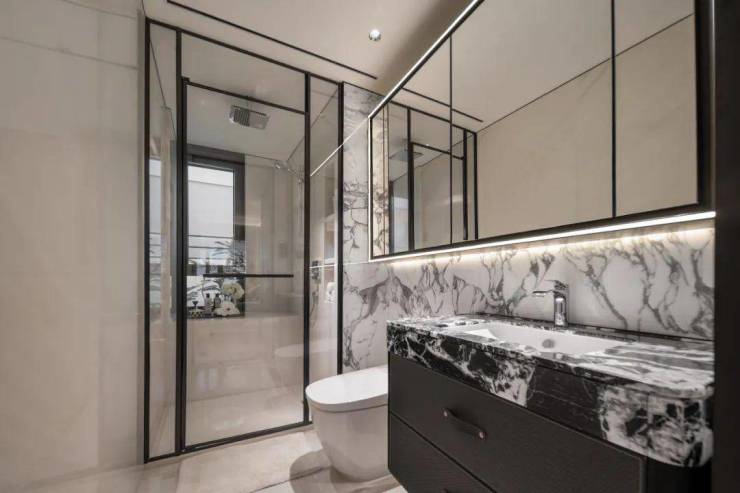 外滩瑞府,为了匹配外滩一公里生活圈的调性,集结了一个亿级豪宅设计师团队,由GOA大象设计负责建筑,公共区域由渡边智昭设计,景观由TROP事务所设计,室内设计则由W.DESIGN无间设计(吴滨团队)和李益中打造。
