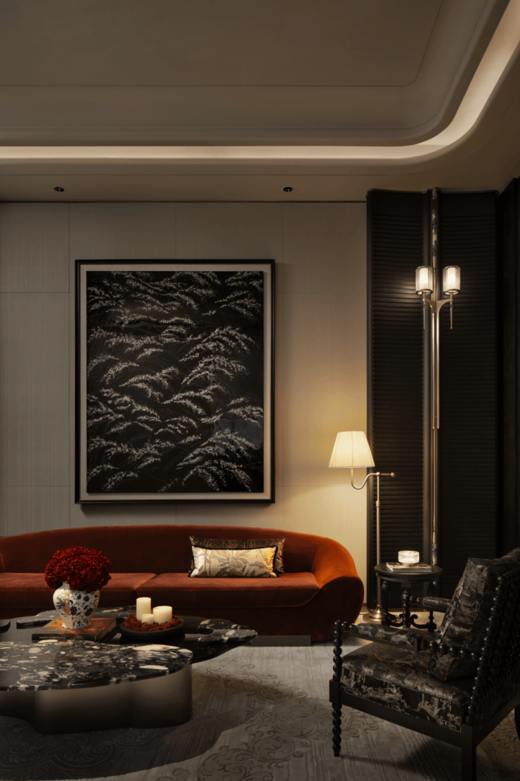 具体的家具方面,设计师利用丝绸、大漆和陶瓷等本土文化元素,从细节铸就空间高级感。