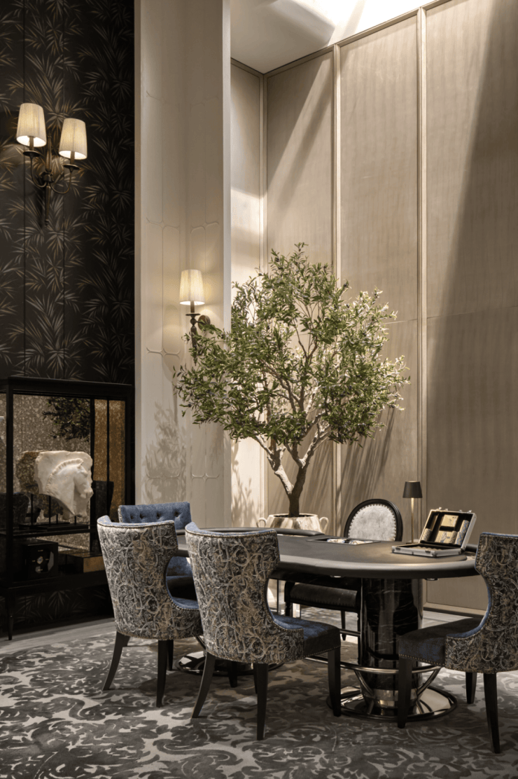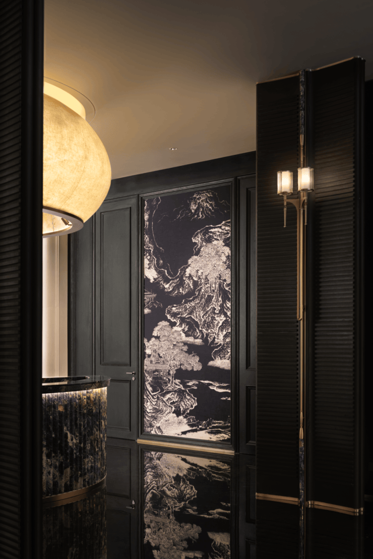 欧洲18世纪的时候掀起过东方艺术的时尚潮流,而设计师借此灵感,通过空间描绘着艺术的历史,再现东方美学的辉煌。东西文化的交融,在这里得到延续,也呈现不同景象。