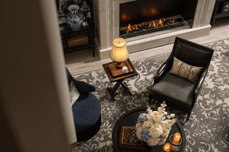 整体简约风格保持不变,细节丰富浪漫,优雅的灯具和壁炉,安静的蜡烛,都表现出优雅气息。
