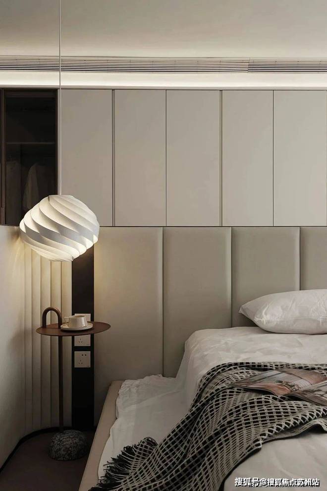 美观与功能想要兼得,可使收纳处变得更加隐形,空间一宽,心也宽了.秩序感在撞色壁柜将区域的划分中,逐渐清晰.工作台与床体的“头碰头”,也让突然的灵感有了安放之地.