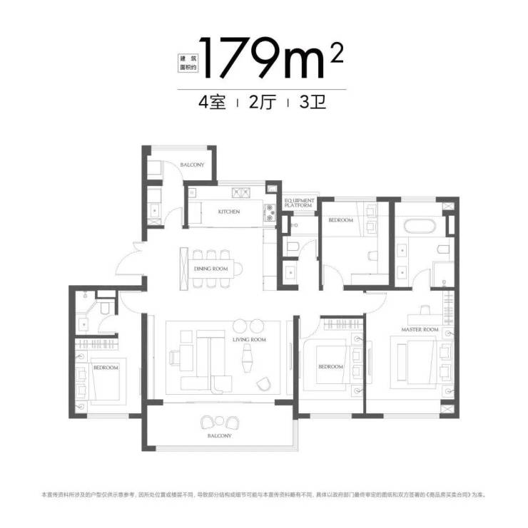 这次加推共3个户型,主力约156/192/222㎡,全是4房起步的大平层.