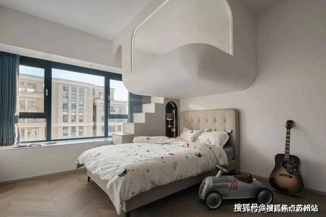 想象需要空间,童真需要守护.床体一侧设计楼梯,沿着台阶往上走,便到了孩子的小小世界.