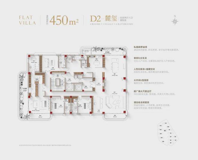 建面约450㎡四室两厅六卫