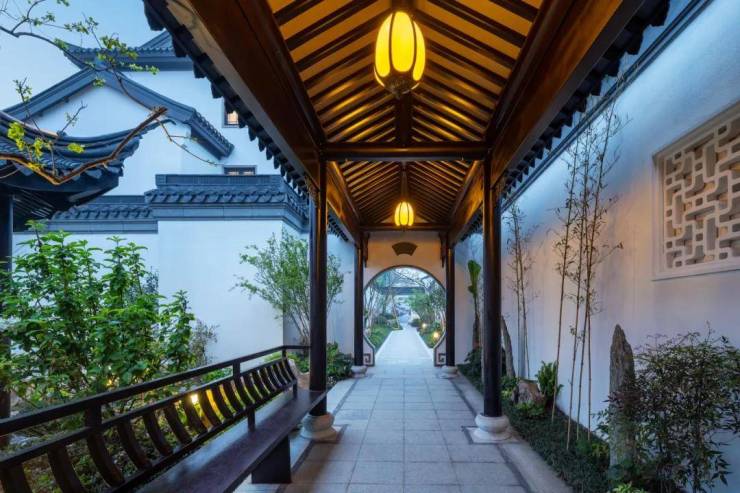 伴随 “种桃种李种春风”的呼唤,桃李春风的故事正是沿着中式情怀开始述说: 湖山相依、宅院相映间,白墙黛瓦、芭蕉疏影、小桥流水缱绻舒展,俨然一幅山水浓墨绘就的画卷,酝酿着宁谧安和的东方意境。