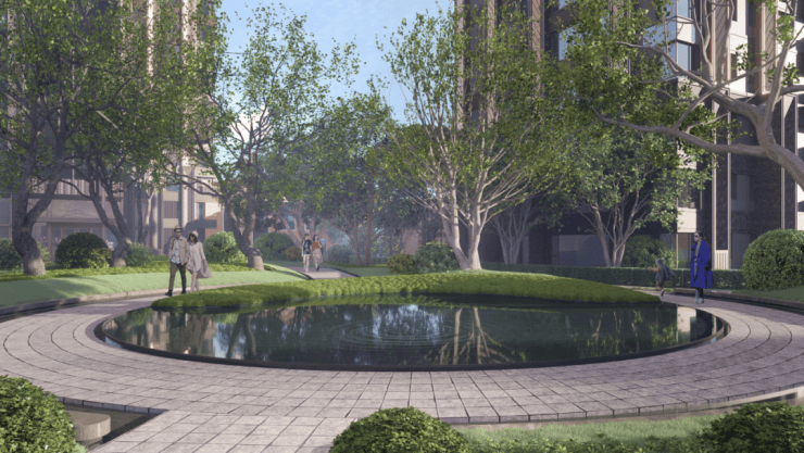 并借鉴海派大都会园林的的摩登、精致、艺术、惬意之精髓,以水为径、以形为礼、以园为厅,打造情景交融的塔尖圈层社区场景。
