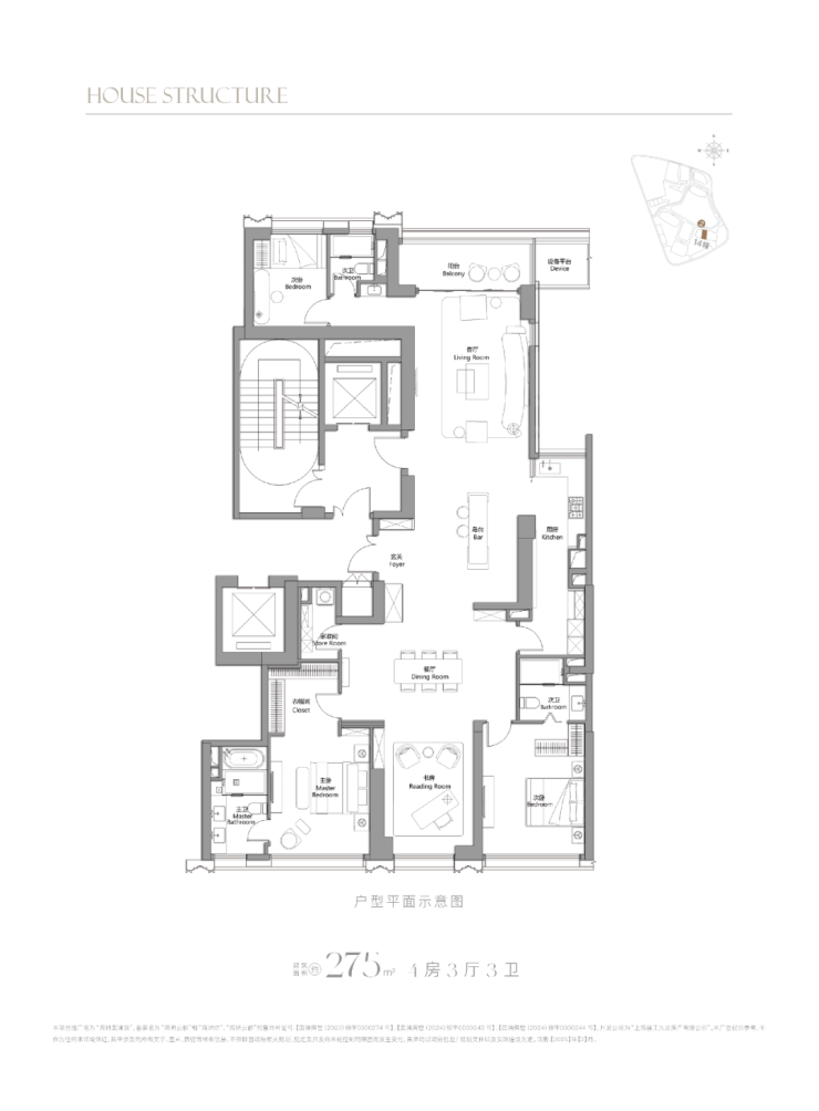 275㎡4房:总价约3950-4380万