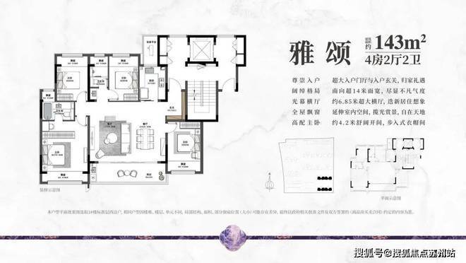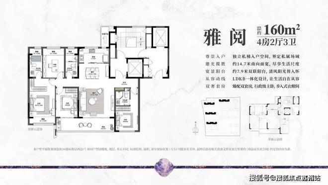 主力户型:建面约 113㎡三室两厅两卫、143㎡四室两厅两卫、160㎡四室两厅三卫、183㎡四室两厅三卫