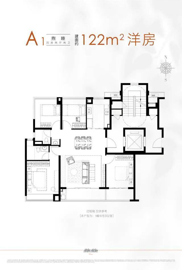 建面约122m²4房2厅2卫墅境洋房,精装交付,南北通透格局,3+1飞机户型,不失功能性的同时让总价更为友好。