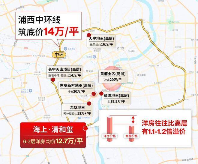 一方面,随着大宁地王放风价直指16万/㎡,长宁天山紧贴中环的项目预计14万/㎡,可它们都为高层产品。