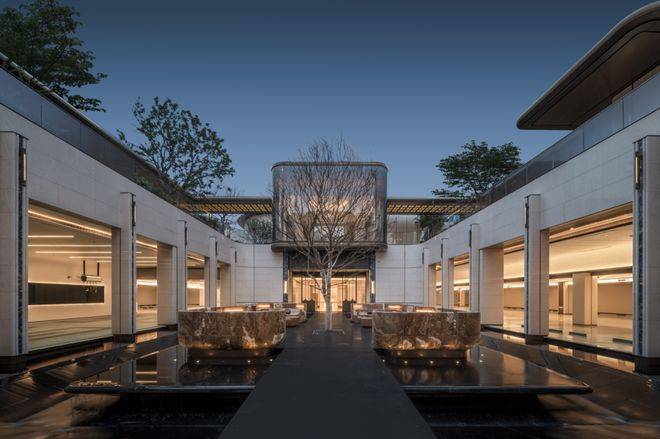 下沉式庭院则以土耳其进口老虎玉为基底,经匠人60天手工细细打磨;树龄超60年的福木「紫薇」,跨越万水千山从远方寻得,让每一次归家,都成为穿越艺术与时光之旅。