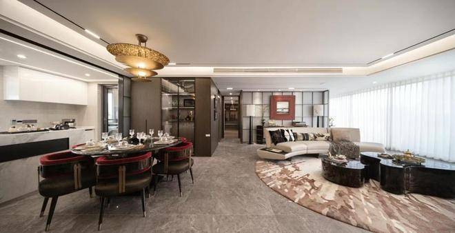 不仅如此,整体空间采用LDKB一体化设计,半开放式厨房搭配L型玻璃移门,可以自由切换,让空间具有魔法。