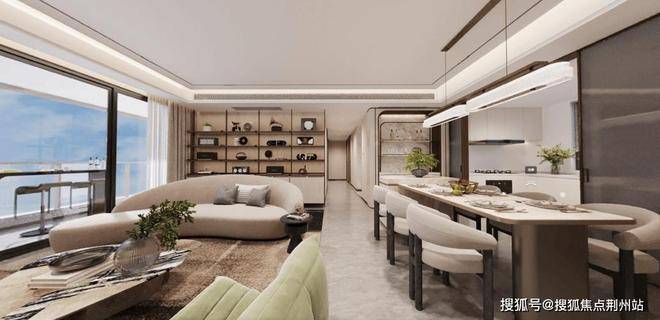 而且厨房标配是半开放U型格局,搭配互动岛台,让烹饪更有趣味。创新的S墙,通过内嵌收纳,可以把冰箱外置,让空间利用最大化。