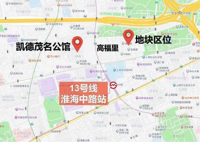 本次公示的地块是高福里新增相邻地块,地处淮海中路黄金路段,直线距离约200米地铁13号线淮海中路站。这个区域是上海最繁华的商圈之一,商业、文化氛围非常浓厚。这里有包括环贸iapm、K11购物艺术中心、香港广场、上海连卡佛等在内的高端商场,也有巴黎春天、百盛和淮海755等中断百货,还有包括FOUND158、INS复兴·乐园、TX淮海这样的上海潮流夜生活地标。