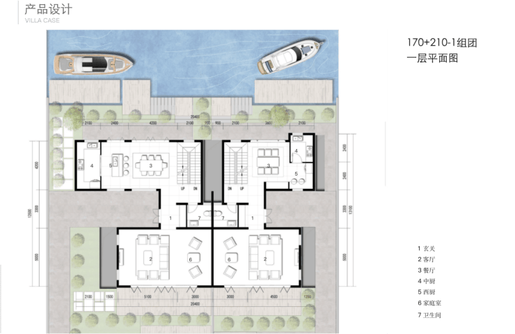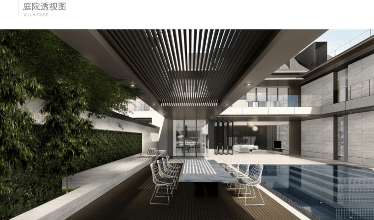 北入户的190+290房型,一层朝南直面庭院和泳池,如果配上整扇的落地玻璃移门......