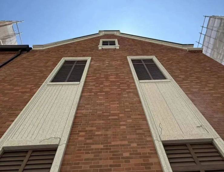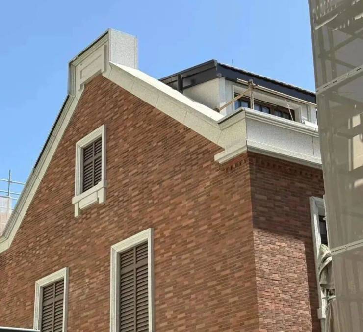 还原清水红砖山墙、孟莎式折坡屋顶、石材石库门门头,保留红色机平瓦屋面、老虎窗、转角石构件,改善石库门格栅内院采光,将石库门建筑的风貌灵魂保留!
