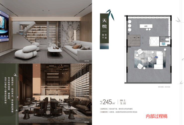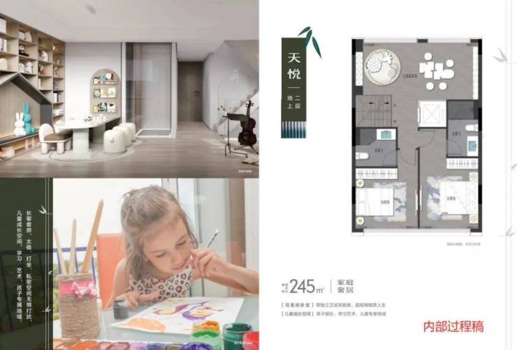约245㎡的联排户型,更是尺度惊人!此户型上下一共做了6层, 地下一层配置 双车位,停车即可入户; 地下室之上为 夹层空间,可做健身房、瑜伽室等; 地上一层则带了一个 庭院和大餐客厅; 地上二层、三层、四层均为静区, 2个豪华大主卧+2个豪华套房配置,关注每位家人的需求。