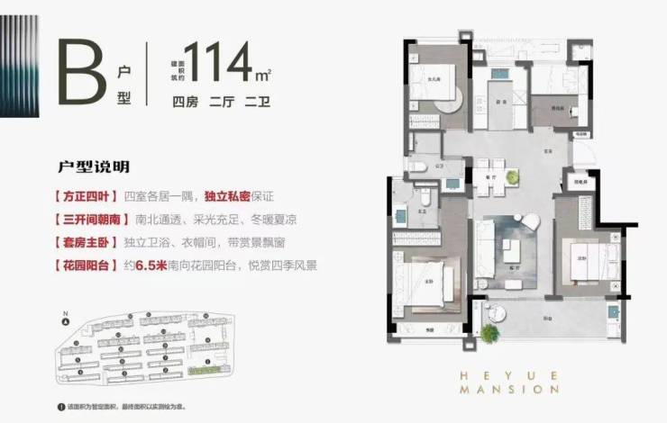约114㎡户型还是标准的四叶草户型,4个房间互不干扰。南向还拥有约6.5米的超长阳台,可同时兼顾生活和休闲功能。