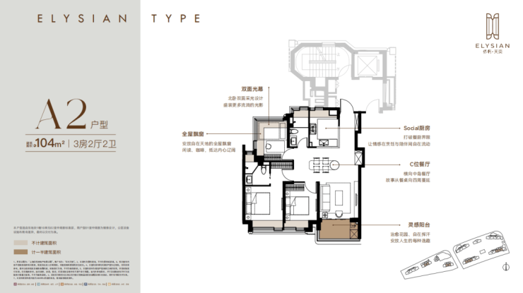 将推出东2幢,104-106㎡三房68套,118-125㎡四房34套,款款堪称“王牌户型”,不仅把每平米利用到极致,更在采光、附赠等维度实现全方位突破。