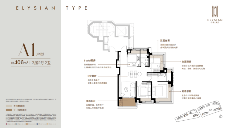 每个户型至少6个飘窗,边套更是约270°转角瞰景。