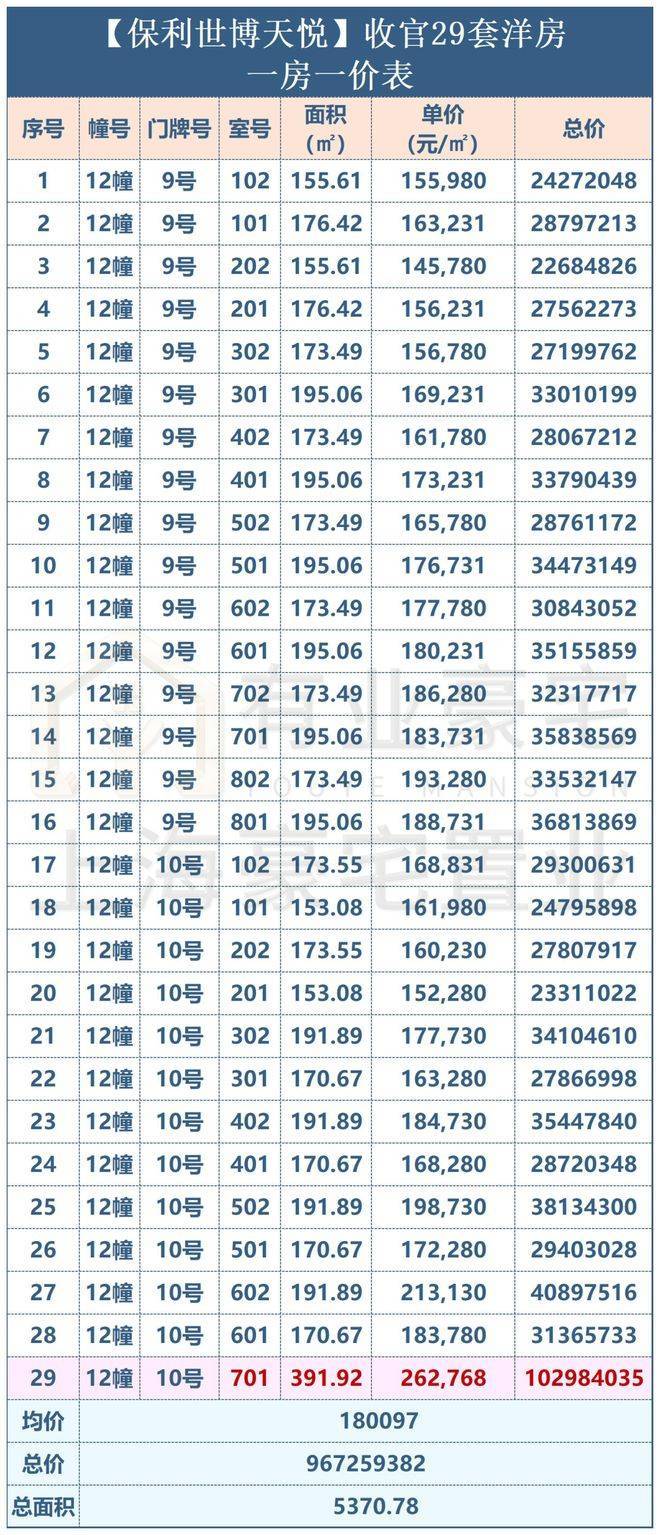 ⑦第七批:6月14号开盘,76套,面积约219-251㎡,均价约18.22万