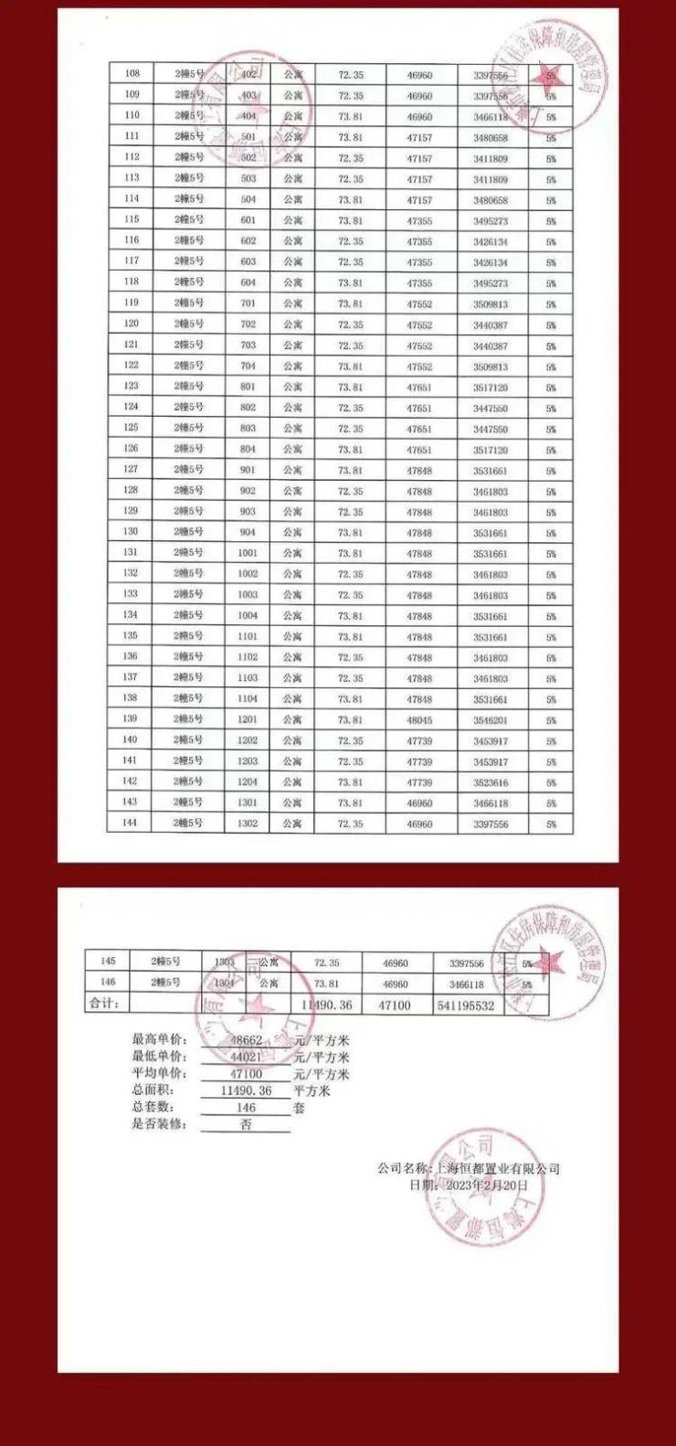 一房一价表