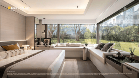 【澄璃之境】的极致窗墙比,则让建筑成为一座通透的琉璃宫殿。创新的灰色满釉玻璃工艺,不仅提升了建筑的美观度,更保证了良好的采光和隔音效果,将四季光影凝练成私藏画作。当暮色垂落,归家者倚窗而立,杯中红酒与窗外霓虹共舞,仿佛置身于艺术露台,俯瞰人间烟火,独享云端静谧。