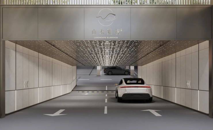 未来社区还设计了地下归家动线,精致景墙格栅凸显仪式感,业主开车进入地库,步行至地下入户大堂,也是满满的精致入户体验~