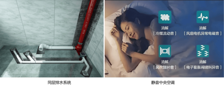 室内墙体采用静音墙体技术,利用隔音棉及隔音毡等材料,维护门窗均采用三玻、同层排水系统(两层及以上同层排水,若首层架空则三层以上同层排水)等,极大减少室外噪音干扰,维护室内空间的宁静。
