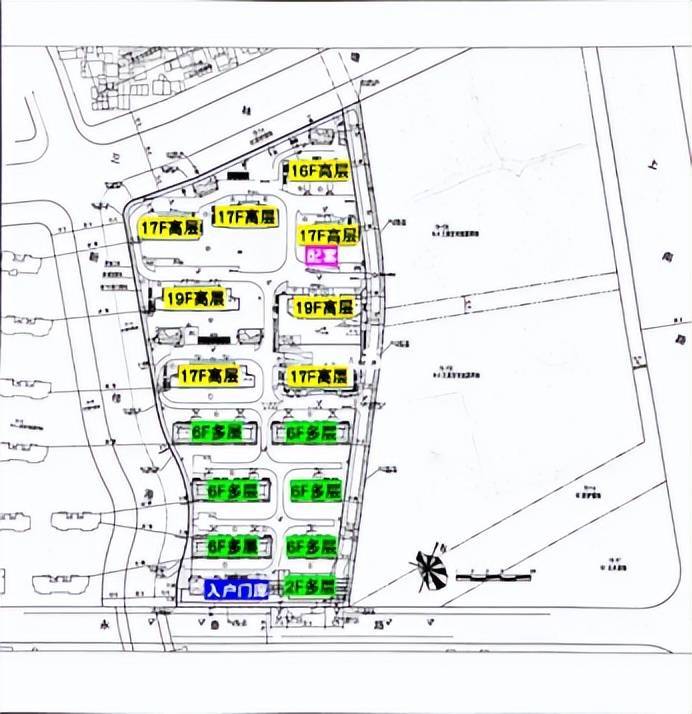 根据设计方案显示:项目拟建6栋6F多层住宅、6栋16-18F高层住宅、1栋17F保障房、1栋17F自持租赁住房以及若干社区配套用房!土地面积44835.6㎡,总建筑面积89671.2㎡,容积率2。